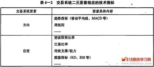 一个菜鸟交易者通常只问方向,不管位置;而一个刮头皮的交易者通常只问位置,不管方向。这两种交易方式都是错误的,正确的交易之道必须兼顾方向和位置两个要素。那么,在黄金期货交易中如何去确认市场最可能的方向,如何去确认相对较好的进场位置呢?表6-2给出了一些具体的方法。无论你做出什么样的选择,你的交易系统必须具备这两个要素,也就是说不管你采用了多少关于方向的交易指标,你必须至少采用一个关于位置的交易指标。反过来,不管你采用了多少关于位置的交易指标,你必须至少采用一个关于方向的交易指标。